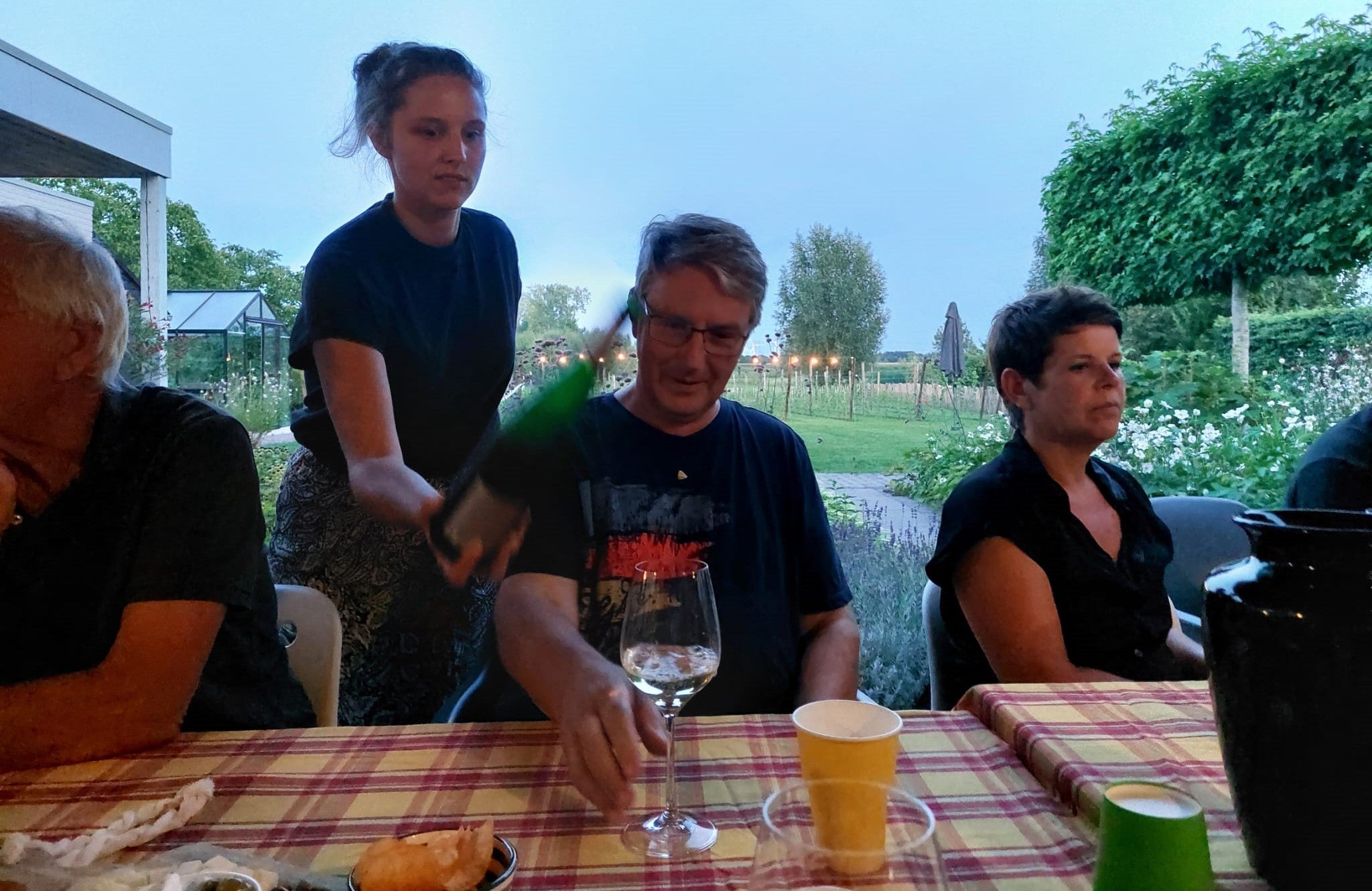 Daarna kan er in het "proeflokaal" een kleine proeverij plaatsvinden waarbij gezelligheid voorop staat. Verwacht dus geen "hoogdravende" wijnkennis. Uitleg over de wijngaard in combinatie met een wandeling tussen de druivenranken in de mooie omgeving en het proeven van verschillende wijnen zal zeker interessant zijn.
